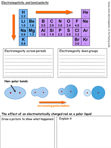 Bond polarity results from imbalanced electronegativities of the atoms involved in bonding. Electronegativity is a measure of the tendency of an atom to attract a bonding pair of electrons. Electronegativity electronegativity is a quantitative measure of how tightly an atom holds onto its electrons. Trying to understand electronegativity trends? Electronegativity worksheet free download and preview, download free printable template samples in pdf, word and excel formats.